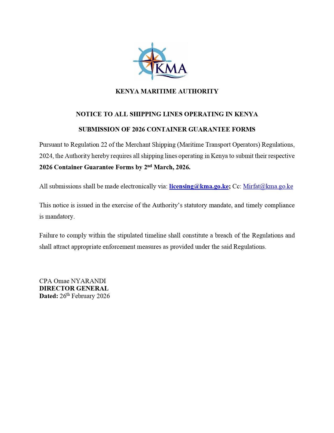 NOTICE TO ALL SHIPPING LINES OPERATING IN KENYA